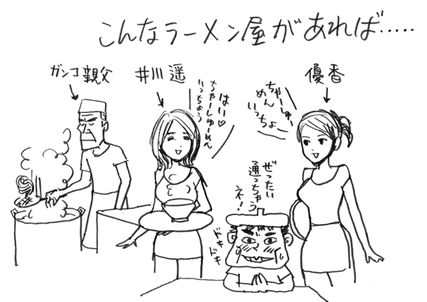 うん。あそこは男ばっかり。だけどみんな、ラーメン屋のプロ。接客係も作る人も。 |