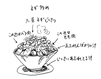 や、旨いとかよりとにかくそのインパクトが(笑)・・・・・でも、もう1度食いたいと思わせる何かはあったね。どっさりのせる九条ネギはおいしかったし。ここでしか食えないっていう強烈な個性があったから。 |